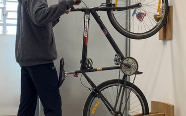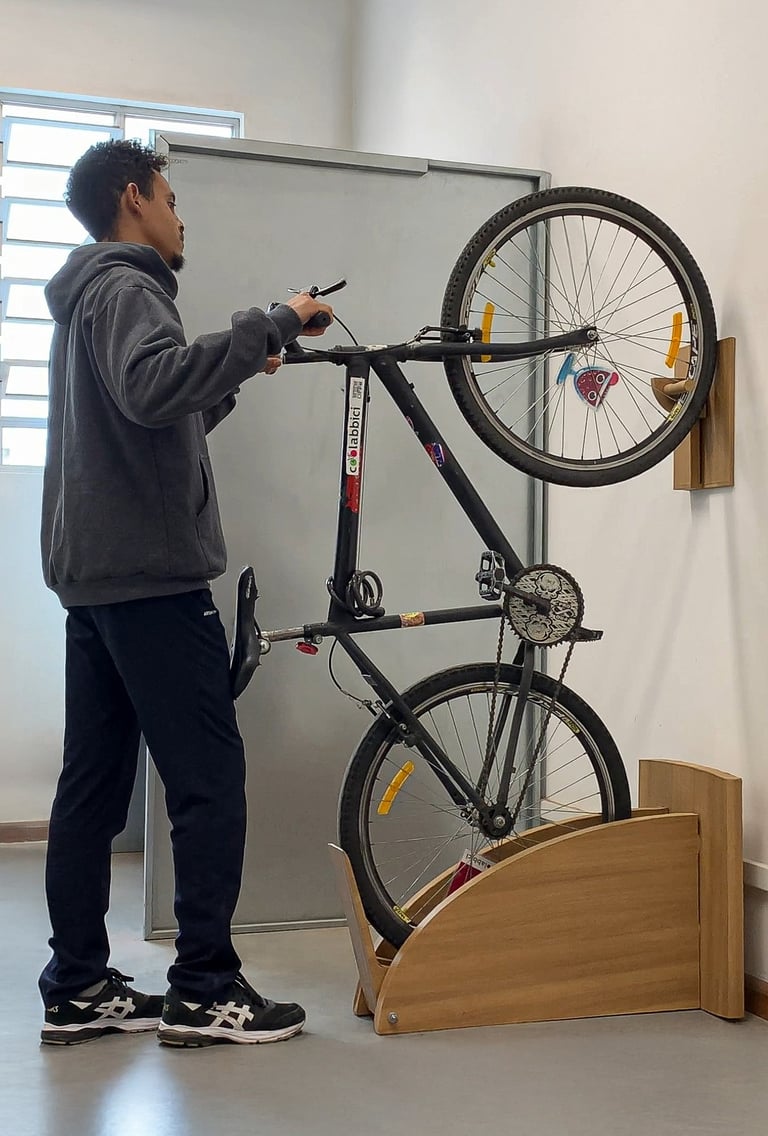 Inspirado no Banco Alpina, o suporte traduz a sofisticação das formas curvas e a elegância minimalista em um produto prático para o dia a dia. Com um sistema ajustável para diferentes tamanhos de bicicletas e um mecanismo seguro de travamento para a roda.