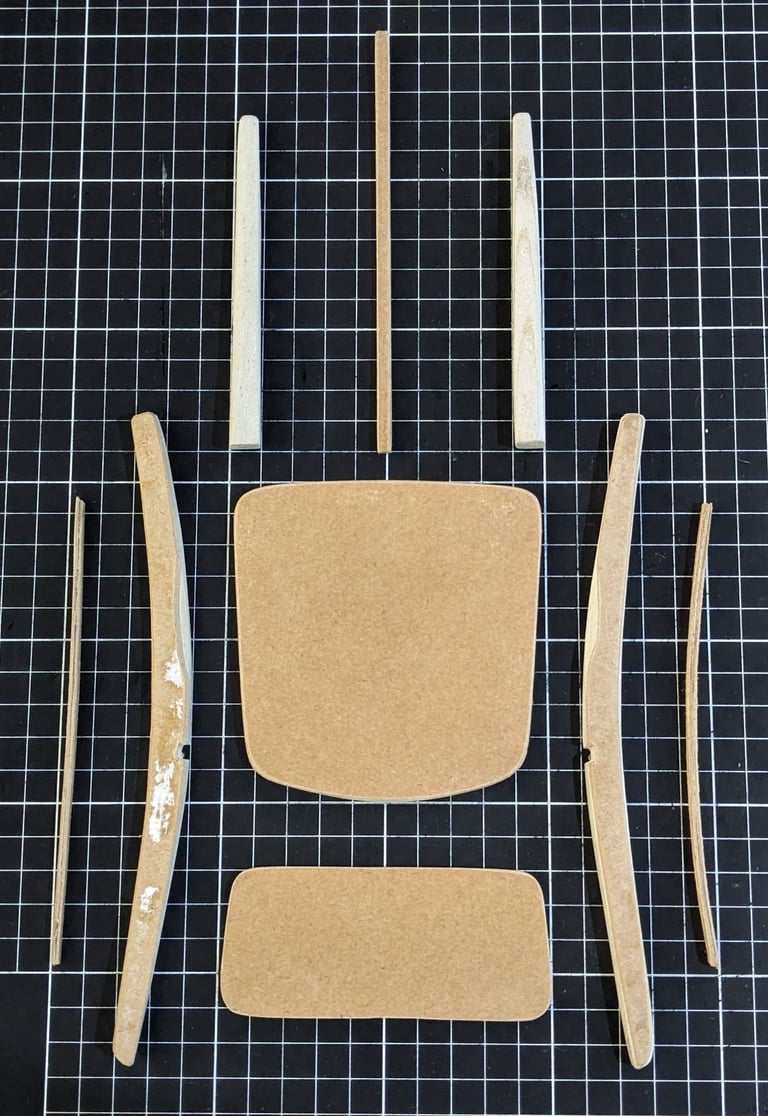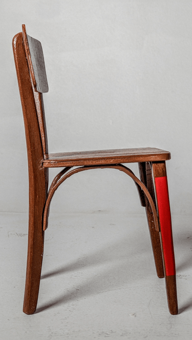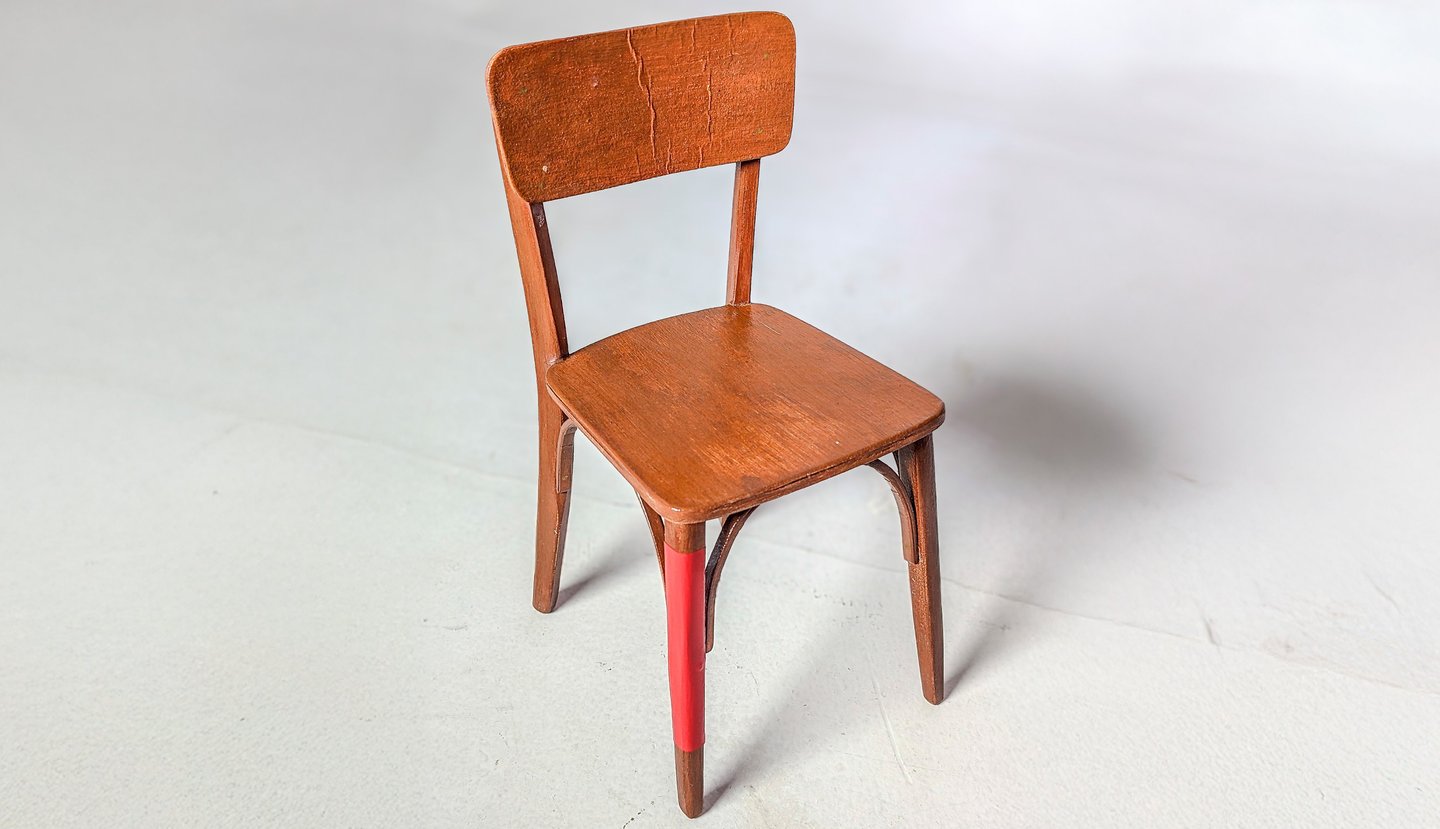 Esta versão em 1/4 da Cadeira Cimo 1001 recria fielmente os detalhes e as proporções do original. O modelo combina técnicas digitais, como vetorização e modelagem 3D, com métodos artesanais.